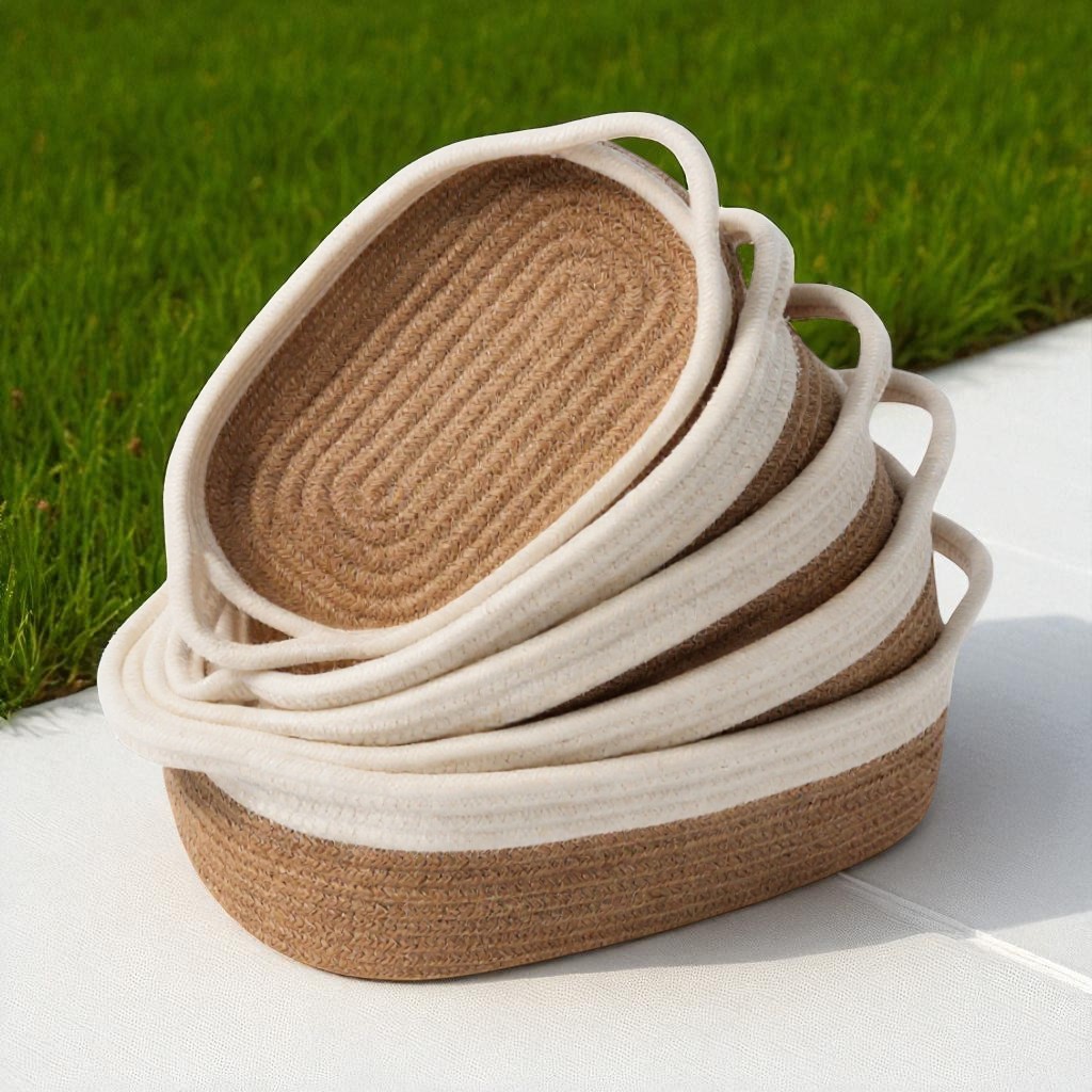 Kit 5 Cestas Armazenamento Corda Algodão Luxo Multiuso Decorativo - Organização e Beleza