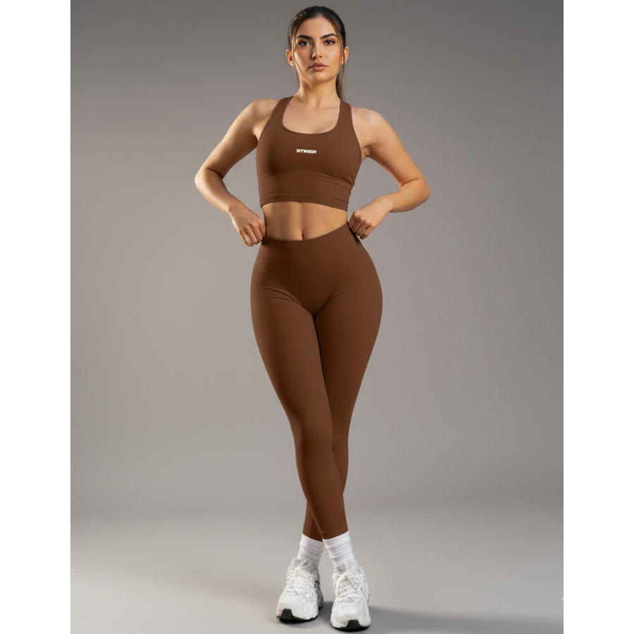 Conjunto Feminino Fitness Academia Treino Dia a Dia Esportes Top + Calça Zero Transparência Tendência Cor Marrom